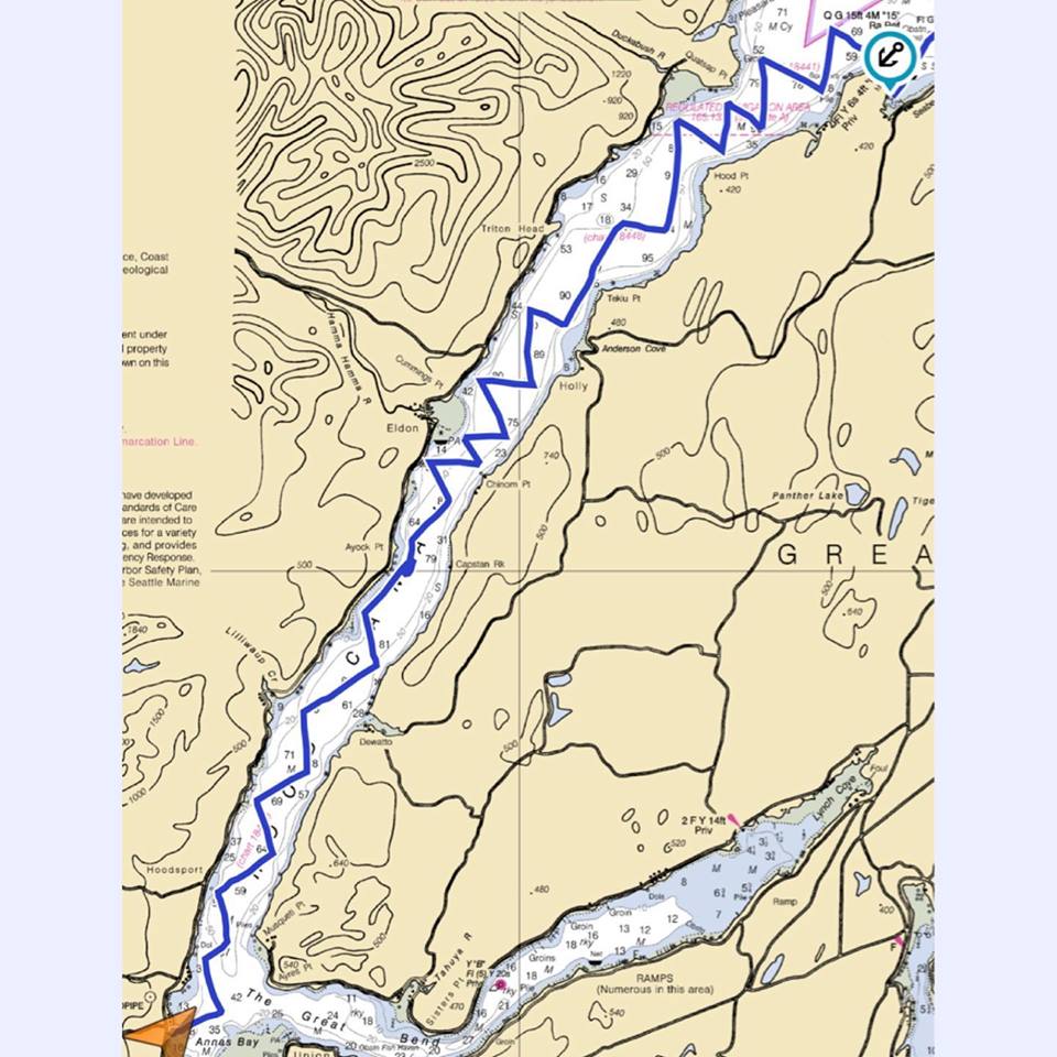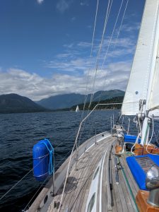 It took us nine hours of sailing – and I am happy to report that eight of those were under wind-power – under variable conditions for us to get to our destination for the day. What was a 24 nautical mile route took us 32 miles of sailing to get there. All that tacking and jibing added some serious distance to the day, for sure. Even though we were exhausted to the core we felt good to have done it. Both for the experience and confidence gained from the exercise. It is why most sailors do not come down Hood Canal, it is a shit-ton of work. Sure, we could have simply motored 24 miles, but what fun is that? I even got Kerri to give me her first ever fist-bump… ha!