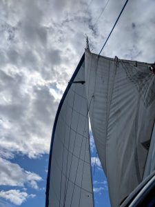 Just after we furled (3) in the jib (4) and motored for a few minutes, the wind made it’s return. We pulled out the jib and got to sailing once again performing another nine tacking maneuvers before the wind died off once again. Why not furl the jib in again? We did. And we started up the motor again too. We got places to be, and we were only half way there.