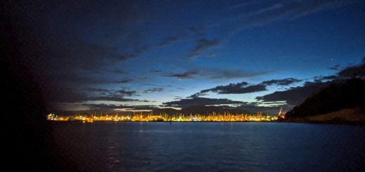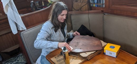 During the work week we did our normal things. Kerri tapped away on her laptop, and I set about replacing as many deck bungs and caulking as I could during the dry days. It seems to be a never ending task – the bung replacement. No matter how thorough a job one does, more bungs start to show their age the very next day. It is why these boats with teak decks are nick named “leaky teaky”, as there is no such thing as a 100% leak free teak deck boat. By early afternoon of each day our battery bank would be topped off and I’d get to fire up the water maker which would run for an hour or two, making water at a rate of 8-10 gallons per hour – making more water in a single hour than we use in an entire day. This thing is amazing.