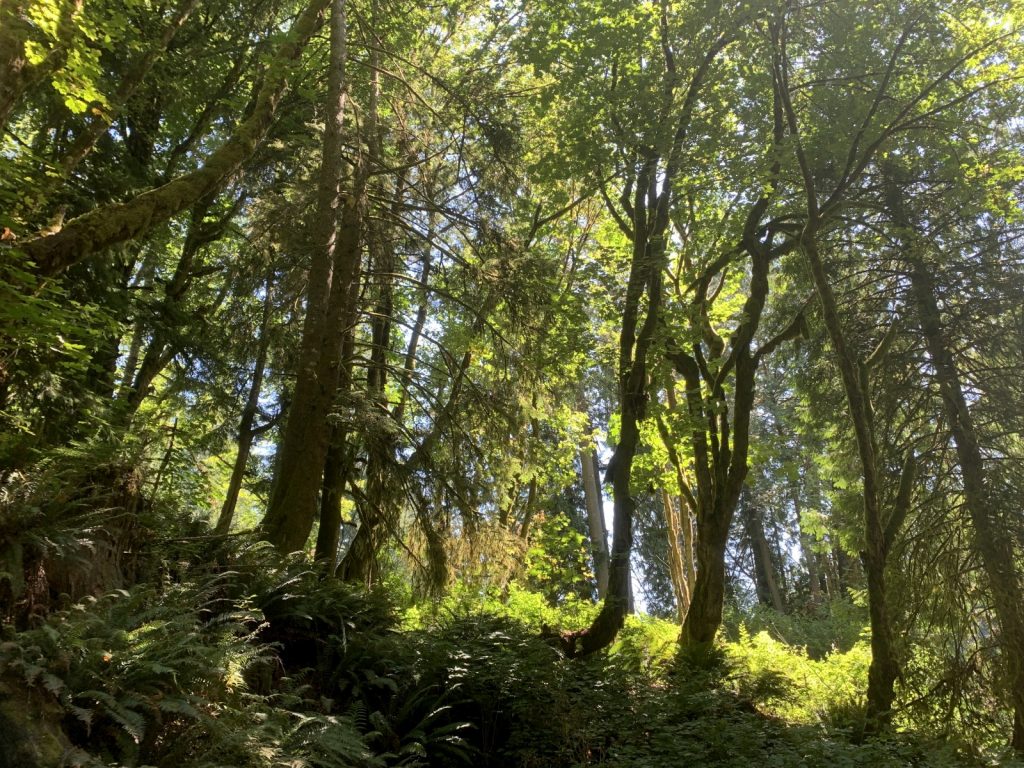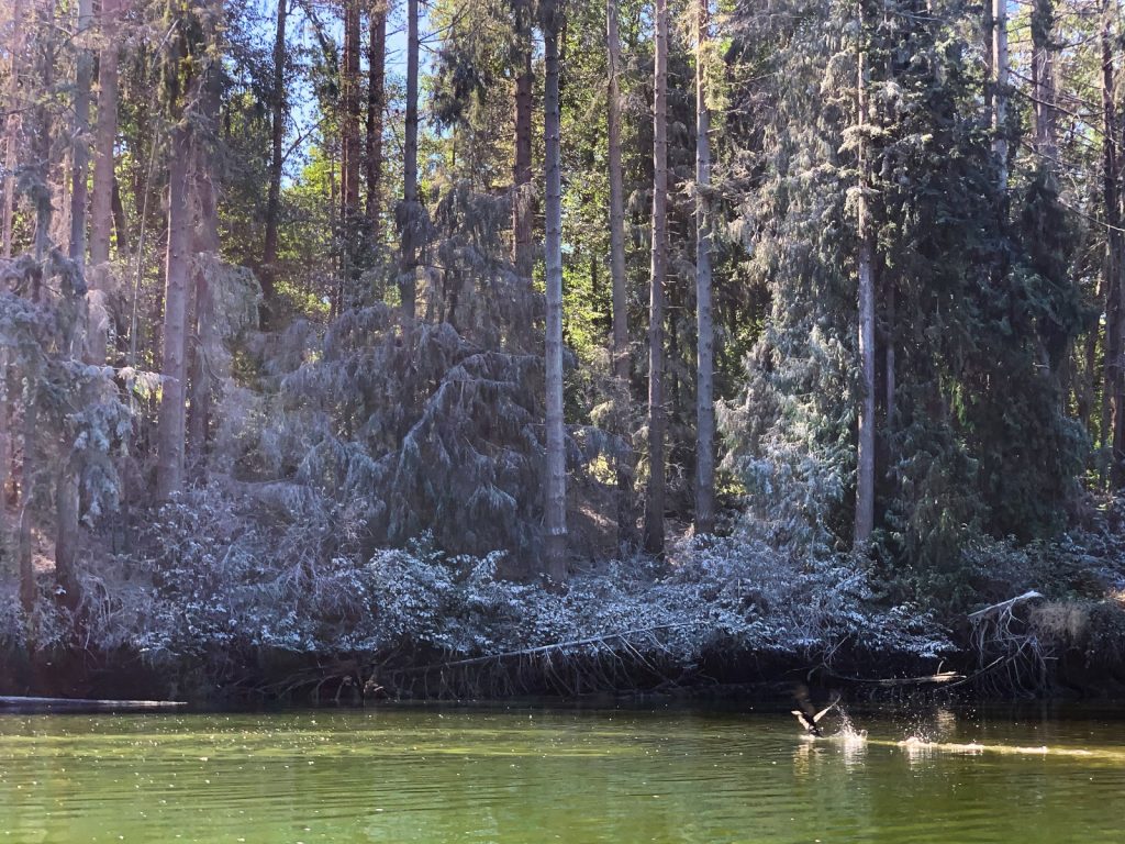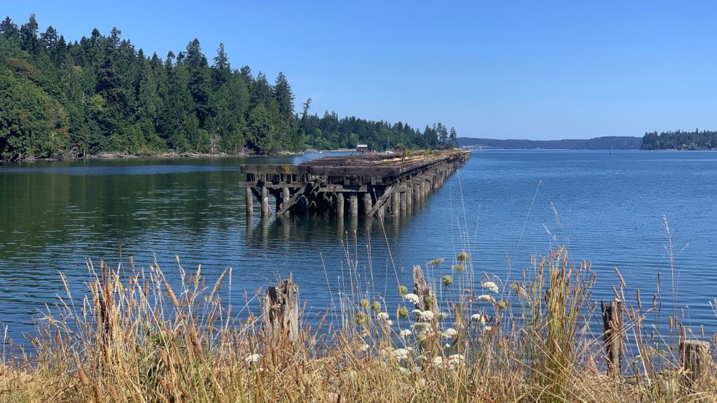 We arrived and dropped anchor a fair way into Henderson Inlet, just off the shoreline of the Woodward Bay Natural Conservation Area – a sanctuary for “shorebirds and songbirds, harbor seals, river otters, bald eagles, a large maternity colony of bats, and one of the most significant heron rookeries in the state“. We would take our dinghy up the tributary and into the conservation area. Here we would beach the little boat so to hike the trail, which would lead us out to the old railroad pier where many of the seals hang out. The forest was another fine PNW forest and it felt good to be out there among it. The trail was neither long or difficult, which I am grateful for as aching bones are a daily part of a sailors life. Over the couple days we hung out in this amazing area Kerri and I concluded that it was our nicest anchorage in the south Puget Sound, and luckily no one else comes here.