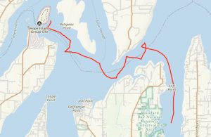 There were only two days before our reservations at Boston Harbor Marina so we didn’t want to go too far. Kerri found a new anchorage for us just a few miles away that would suffice. With sails already at the ready before the anchor was stowed, we sailed away from Hope Island, slowly. The wind was extremely light at Hope, but I was determined to sail point to point this day. The first 10-15 minutes we just floundered in the current, at least carrying us somewhat the correct direction through Squaxin Pass. Eventually though, the wind would come along and fill the sails. All was progressing nicely with a few tacks here and there to keep us on our course.