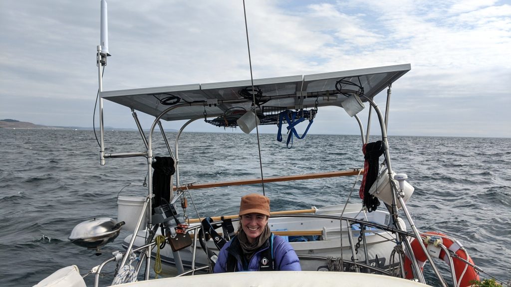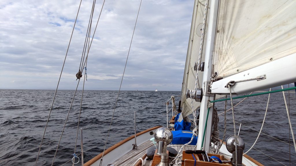 The most dramatic part – and one we thought we had on video but it turned out to only contain the teak deck – was when we tried to avoid two whales coming directly at us. I turned hard to the port (left) only to get directly into the path of two other whales I had not seen. Although we are suppose to stay hundreds of meters from any of these creatures, there isn’t much a sailboat can do without some serious advance notice, and now we had little to no forward movement as the sails were trimmed incorrectly for the new wind direction. We ended up just stalled out in the path of four orcas, two of whom (one a youngster) decided to swim directly under Meriwether. As the adolescent whale came out the other side of the boat he/she jumped out of the water – twice – I assume in play. It has been a long time since I felt such awe… a very long time.