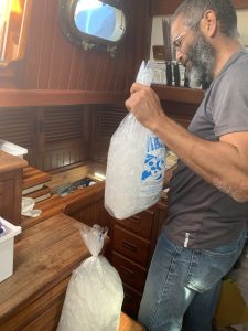We dropped the sails and motored into Mosquito Pass to find an anchorage after the long and exciting day on the water. It was at this time that our automatic bilge pump activated again, informing us of a second attempt within a week to sink Meriwether. After pulling up a floor board, it was verified that we were once again taking on water. We got to anchor and found that the same hose that leaked just a few days ago was leaking from a completely different spot – spraying water all over our fridge condenser, shorting it out. The leak was a quick fix, but it will take three weeks to get the part for the fridge. Luckily, our fridge was once an icebox. So we bought some ice.