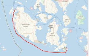 So, with the wind coming from the west (as advertised for once) we took the opportunity to go the long way to our next destination. This would entail going around the west side of San Juan Island. Supposedly, a pod of orcas call this area home. While I figured this would be our best chance to see them, I was not getting my hopes up. Nevertheless, it was going to be a great 25+ mile sail along a route we had not done before… so win-win even without the whales.