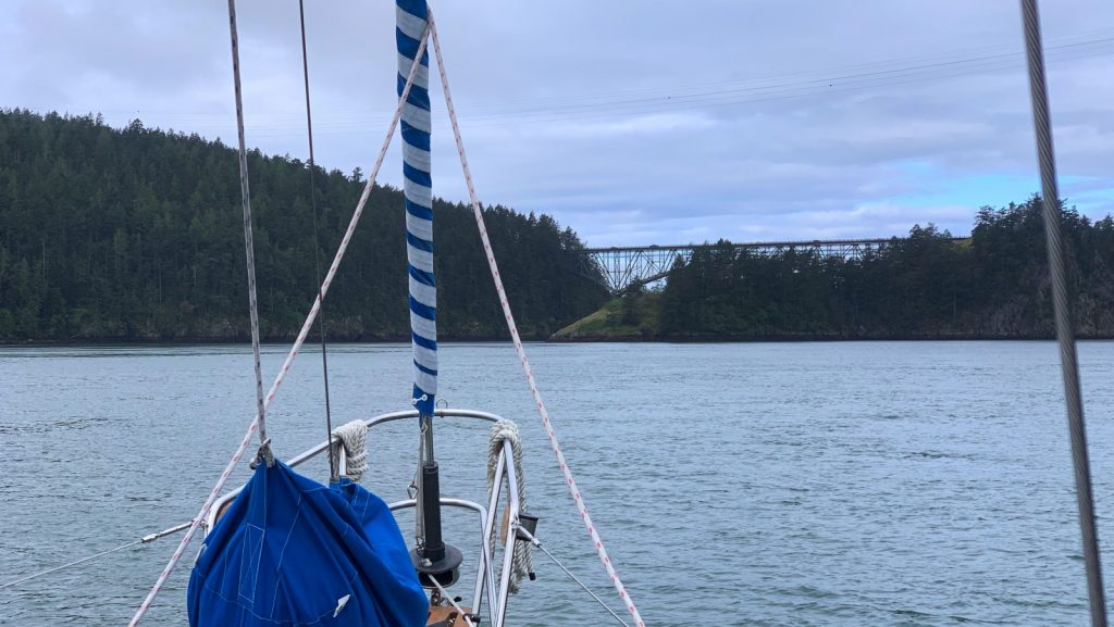 It was early for us – with a 9 AM start to our sail – but we had the infamous Deception Pass to navigate and the current rules all when it comes to the timing of this small stretch of water. With slack-tide scheduled for about 10 AM, the penalty of arriving late would mean a strong current against us. As usual, it is my preference to arrive to any party on the early side, if only to avoid the stress of being late. Early, in this case, meant we had a current pushing us through the pass.
