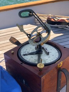 At Whatmough we had an appointment to have our compass professionally “swung” (calibrated). Our compass has always provided just a random heading between 0 and 360 any time we looked. Look again a minute later and it could/would be hundreds of degrees difference. An old school compass adjuster (a profession that has all but died off completely) and Master Captain was willing to meet us at the boat to complete the task. It took only an hour of pointing the boat in varying directions for him to tune in Meriwether’s compass to within 1 degree. It appears that someone, at some time in the past, took a small screwdriver to the adjustment screws for our compass’ magnets. I assume that person figured they were tightening the mounting screws, but the end result was a compass that tries to kill you. I am happy to report that is now fixed.