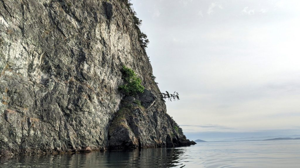 We punched out the west side of the pass and raised our sails as soon as clearing all the rocks and small islands. By this time we had only six miles left of the nine mile voyage, but we are always desperate to sail Meriwether as opposed to motoring. We wouldn’t get the luxury if having a lot of wind to get us to our destination, but since we left so early, there was no rush. What breeze we did have moved us along at a peaceful 2-3 knots. Time was even taken to practice a heave-to and a single-handed man over board drill (something we do not practice often enough). It was in that MOB drill that, upon hauling hard on the jib sheet, that I was launched across the cockpit and landing the small of my back hard on the opposite winch. It hurt real bad, and would only get worse in the coming days. I powered through the pain to successfully save the mock-Kerri (a large hunk of drift wood) in the water before turning back towards our destination of Whatmough Bay.