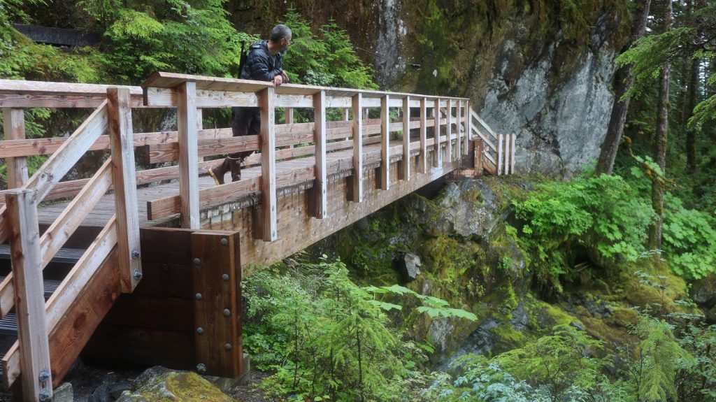 Honestly, I wasn’t expecting much from Thomas Bay. Alaska had already given us so many beautiful locations that I fully expect it to be running low by now. In the morning we took the dinghy across the bay to the mainland where a forest service cabin and a trail to a waterfall lay in wait. It felt like it had been a long while since our last hike (the backpacking trip?) so we tied up the dinghy at the [occupied] cabin and set off to down the trail.