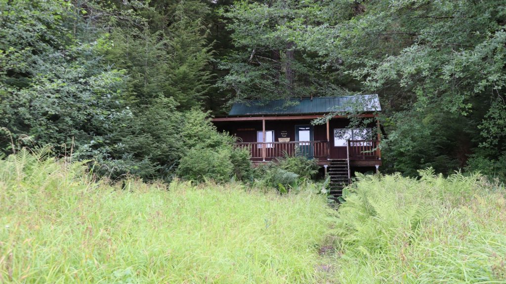 Our view was Stop Island a mile to our south and the 3700 foot tall Duncan Peak even further past – looking ominous with clouds lingering at it’s peak all times. Kerri’s scouting of the maps found that a forest service cabin was another mile down the bay. It has been some what a tradition for us to go visit the cabins in our anchorages, if for no other reason than to get us out and off the boat. They also tend to have trails leading off from them, and my girl wanted to hike one morning. We landed our dingy and trekked to the cabin, not finding any trail, but we did find a tree with a large infestation of fungus that even I recognized. After a quick tour of the cabin (visitor logs went back as the 1980’s) we – by we I mean she – got straight to chopping some of that fungi for future meals. Between the crab and the mushrooms, our fridge was overflowing with food (that I won’t eat).