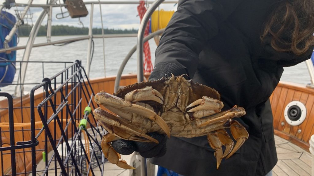 When we pulled into Portage Bay, fairly late on a Sunday afternoon, we thought it would only be an overnight stop. Portage Bay isn’t the most scenic place, nor is it super-well-protected from the weather from the South or North (a few-miles-long bay can still allow the wind to howl through), it did have that one little thing we need to spend more than a single night; a cell signal. We haven’t had many (any?) anchoring over work weeks since arriving in Alaska. So much time has been spent tied to a dock in each town that we were desperate for some extended time out on the hook. Portage Bay was inviting us to stay longer, and we gladly accepted. Kerri immediately dropped her crab pot and a few hours later had fetched a nice couple-day supply of fresh crab.