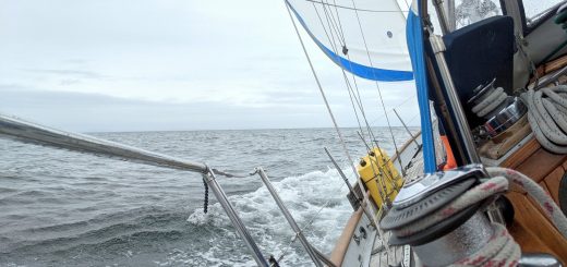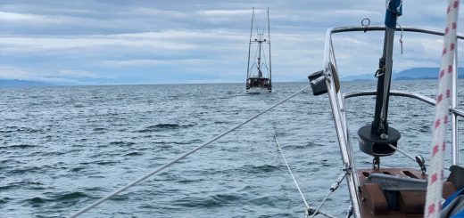 The nine hour trip, motoring the entire way, saw nothing of note happen. It was cold – Alaska cold – the entire day of course, but at least we didn’t have a heavy wind to deal with. Kerri and I took shifts out in the cockpit, usually lasting between one and two hours each before having to trade off and get out of the cold. Thankfully, we kept our wood stove burning that whole trip, so there was some reprieve from the frigidness of being outside for any length of time. Upon arrival in Juneau we were met by the nicest of harbor employees who had all our paperwork prepared and slip assigned. She did this thanks to being warned of our arrival by the family friends who came down to drop off a hot meal for us to have at the end of our log, cold, journey. These two small gestures made a long hard day worth it in every sense.