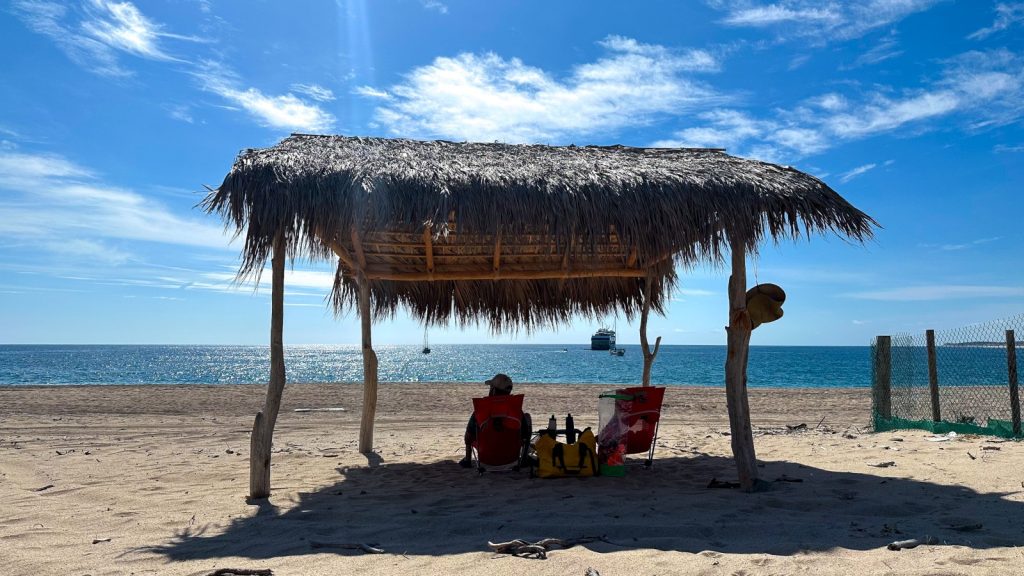Los Frailes did not have much to write about on land. It is an active fishing outpost for the locals, and vans and other small RVs lined the long crescent shaped beach. Beyond that, it was just a peaceful anchorage out in the wild – exactly what we needed after Cabo. Beauty did surround us in all directions. The cliff and rocks to our north-east, the teal waters under our hull, and white sand beach in front of us with it’s beckoning palapa, and we made sure to sample them all. Kerri and I got out for a dinghy tour to the rocks, and even an afternoon on the beach in which we did a wee-bit of snorkeling before Kerri picked a fight with a jelly-fish. But, for the most part, we just started to relax a bit now that we are finally in the zone of Mexico we (or maybe it was just me) have been seeking for so long.