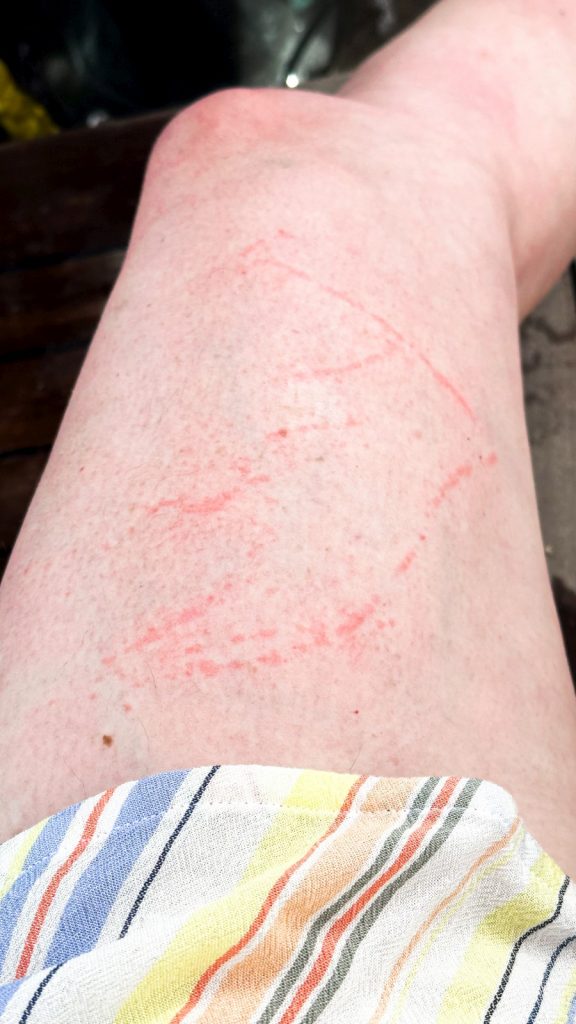 Jelly fish! I’ve only had problems with the Portuguese Man-o-war and I’m REAL careful now.