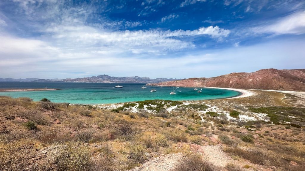 It took a bit, waiting on the wind to calm down a tad, but we eventually moved on from our island adventures on Isla Ispiritu just out of La Paz. We would turn Meriwether’s bow to the North toward Isla San Francisco, which the guide book describes as one of the most popular anchorages in the area – and proved true with the large motor-yacht types. We had already begun to feel the uncomfortableness of charter boats anchoring nearby, but the feeling was only just beginning to crawl under our collective skin, and much worse was to come in the future. But first we had to get there.