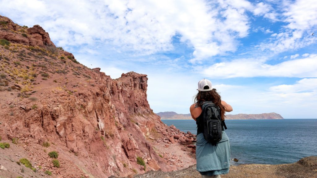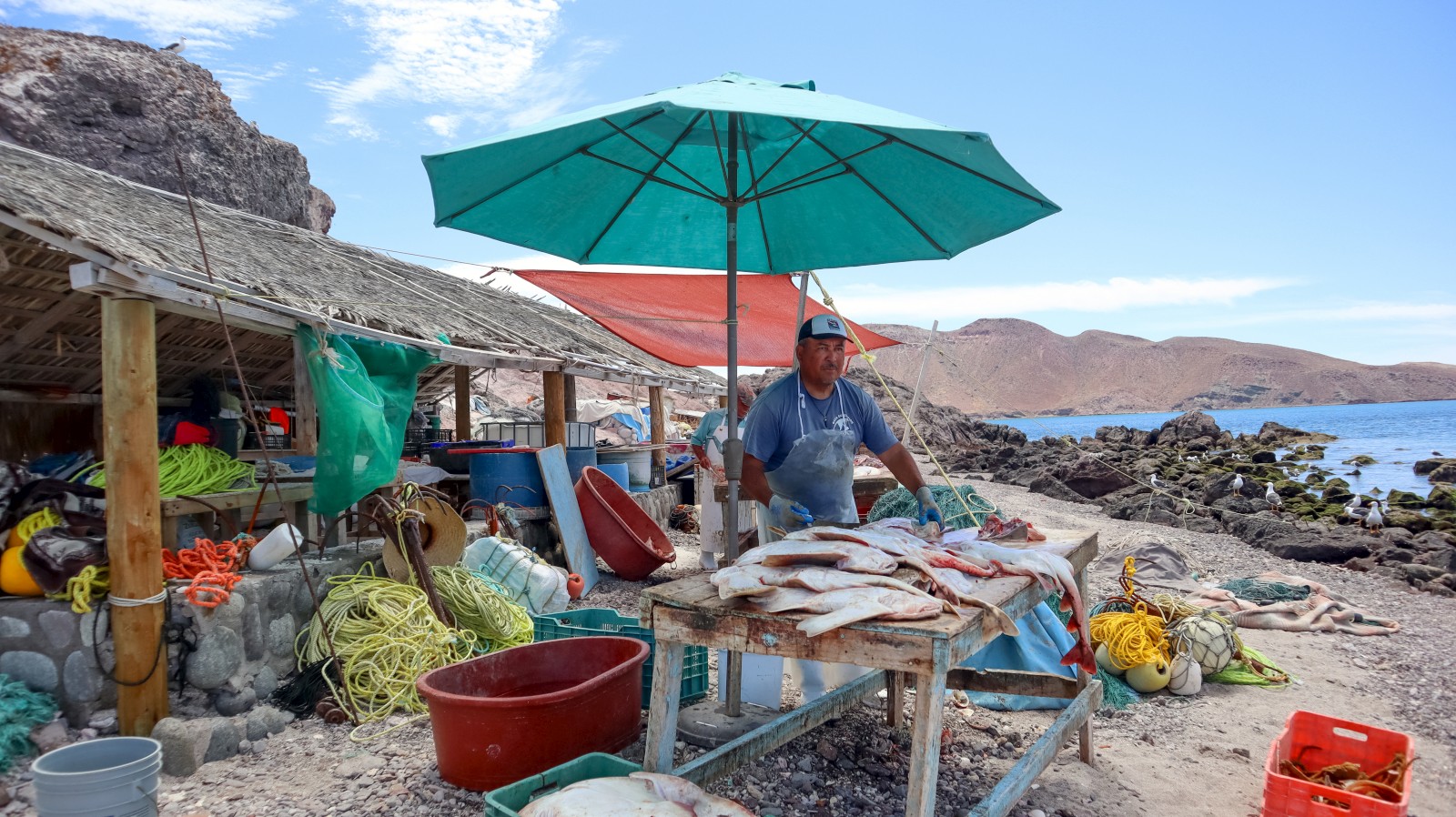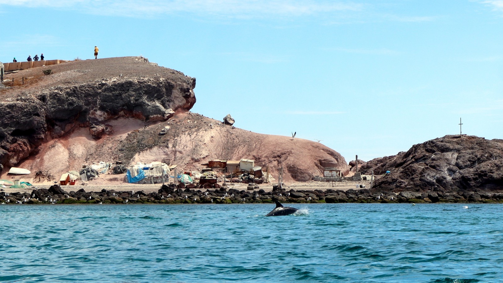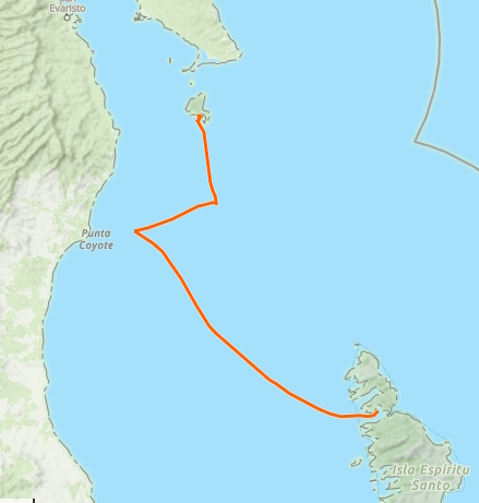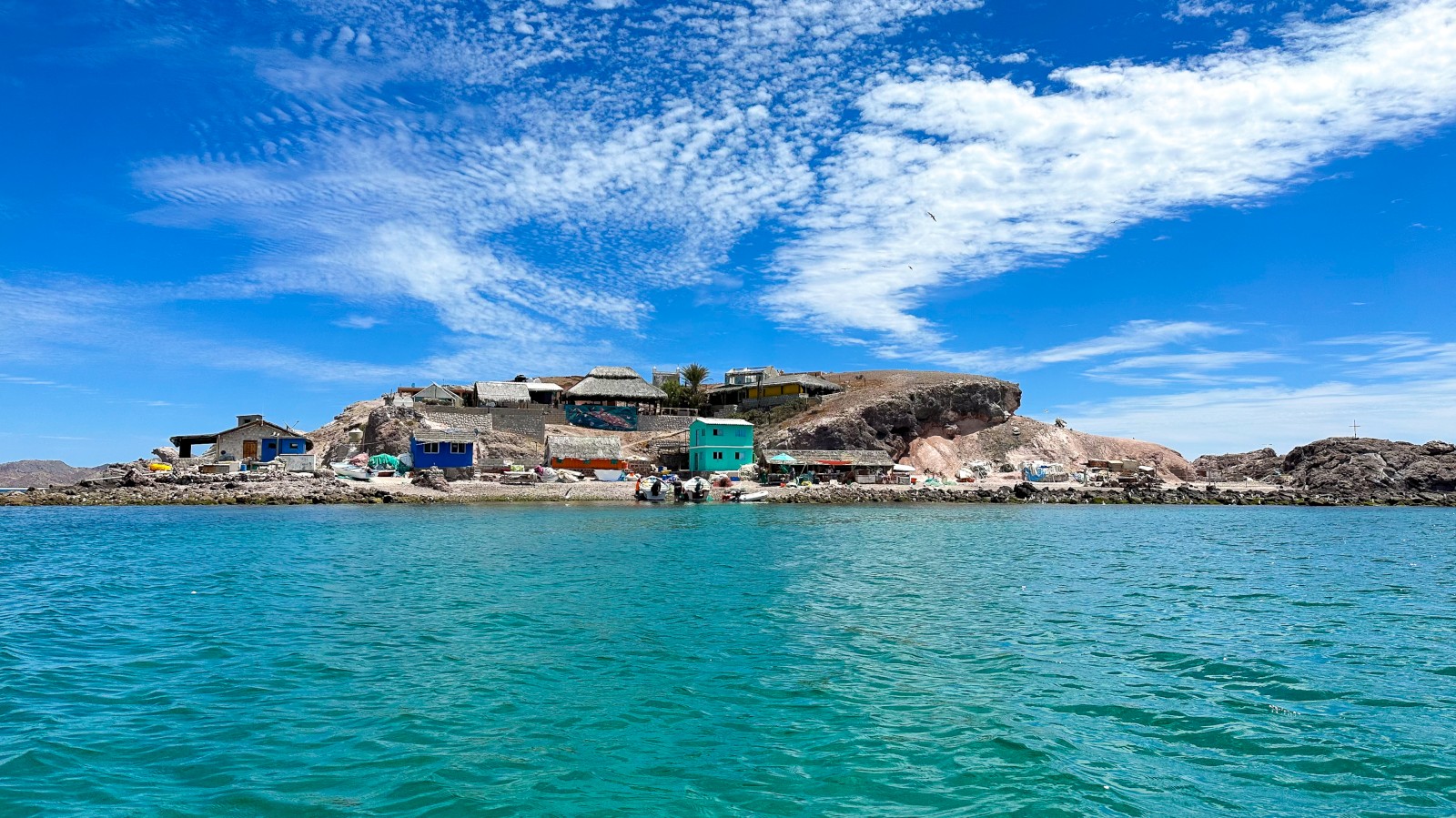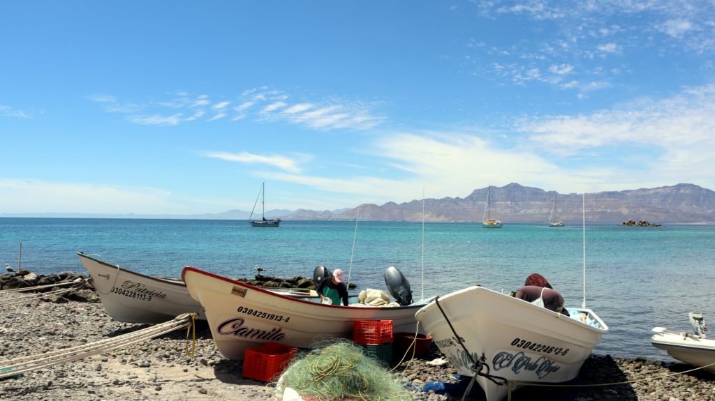 Isla Coyote is a very small Island just north of the (also small) Isla San Francisco. It hosts a small fish camp, where a family or two live during the season, and some of the friendliest folks you ever did meet. I’m trying with my Spanish, but not hard enough, and I regretted it here, as I would have loved to chat more with this great group of folks. Here, the catch of the can be purchased, and sometimes the women sell necklaces. The day we came, there were no necklaces to be sold, and the plentiful catch of the day was shark, so we didn’t buy anything, but we enjoyed the warm welcome, magnificent views from the short walk to the top, the scruffy terrier mix who tried to act tuff but really just wanted scritches, and the toddler running around in his PJs at noon. Oh, and the dolphin pod dancing right in front of us on our dinghy ride in. Our visit was short, but I’m sure I’ll remember it as a highlight of this region. – Kerri