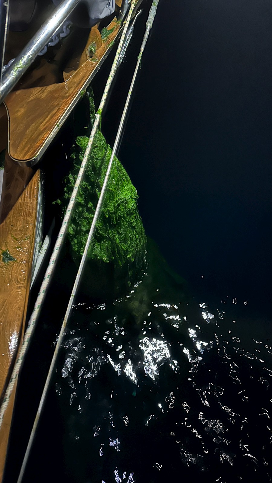 After five nights we woke at 3am to get to our next destination some 70+ miles away. It would be an all day voyage (about 14 hours) so we were starting as early as possible. The only problem was a 45 minute delay as we fought off repeated sea-monster attacks while hauling in our anchor. These massive balls of seaweed were so heavy as to cause the electric windlass to strain pulling up each before we could cut them away with knives (one broke, and another fell in the water) and our bare hands. Eventually we fought off the monsters and were able to set sail. South we go… with a stinky anchor locker.