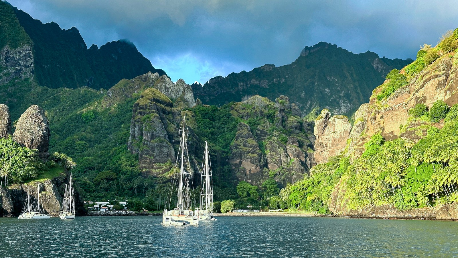 As we neared the island of Fatu Hiva we could begin to see the splendor of the place. Huge green jungle extended into the clouds above, held down only by the much larger blue skies in all directions. Our anchorage – The Bay of Virgins – is well known by anyone who has seen a magazine cover relating to anything French Polynesia. Sailors flock here, not only for the spectacular view on the anchorage itself, but the village just on shore is straight out of an old weathered book found in a dusty library from the 1400s. The huge spires made a perfect gate of sorts
