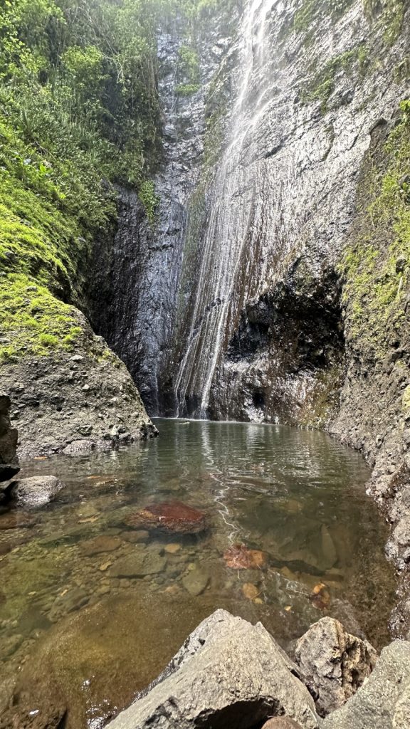 The big adventure of during our time here was the hot and muggy hike out to Hanavave Waterfall. The distance and elevation gain were acceptable for this old man, making for a nice first hike into the jungles of French Polynesia. The payoff at the end was a picturesque waterfall with an ideal swimming hole to wash away the unrelenting sweat and grime of the past six weeks. If we were the influencer types, we surely would have done a much more thorough photo shoot. Instead we just enjoyed ourselves in the moment, ate a small snack of granola bars an oranges, then set out to return to Meriwether for a day of work.