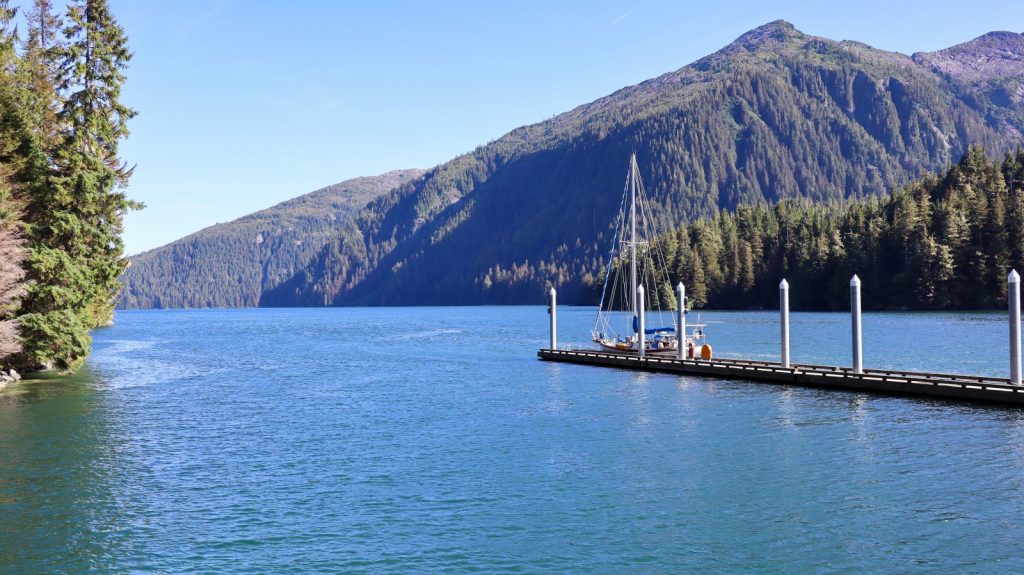 We had just a sniff of a cell signal at the end of the dock (with all the boosting gear working as hard as it can), so it didn’t take long before the idea of spending a week came up. I surely was not going to complain or veto, so we went ahead and paid up for a full week (yep, they had a weekly rate for dock space) and hit the tubs every morning and evening during our stay. Other boats came and went for a few days. We even had the whole place to ourselves for a day, but eventually the dock space would fill with other boats. One of which was a 70 foot carbon-fiber racing catamaran who’s crew (a younger couple) became quite good company for the night they stayed. They invited us to join them that evening at the natural springs up the trail – which I must admit wasn’t even on my radar. During our evening together they did a tremendous job of selling us on wintering in Sitka (where they have a house). Afterwards we invited them over to Meriwether to continue the conversations over a cocktail. And the following morning, just before they shoved off the dock, they gave us a tour of the Cat and fixed us up with a retired crab pot after hearing our crab pot loss story the night before.