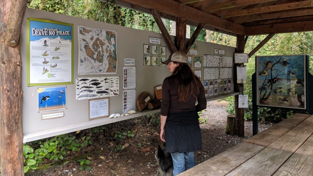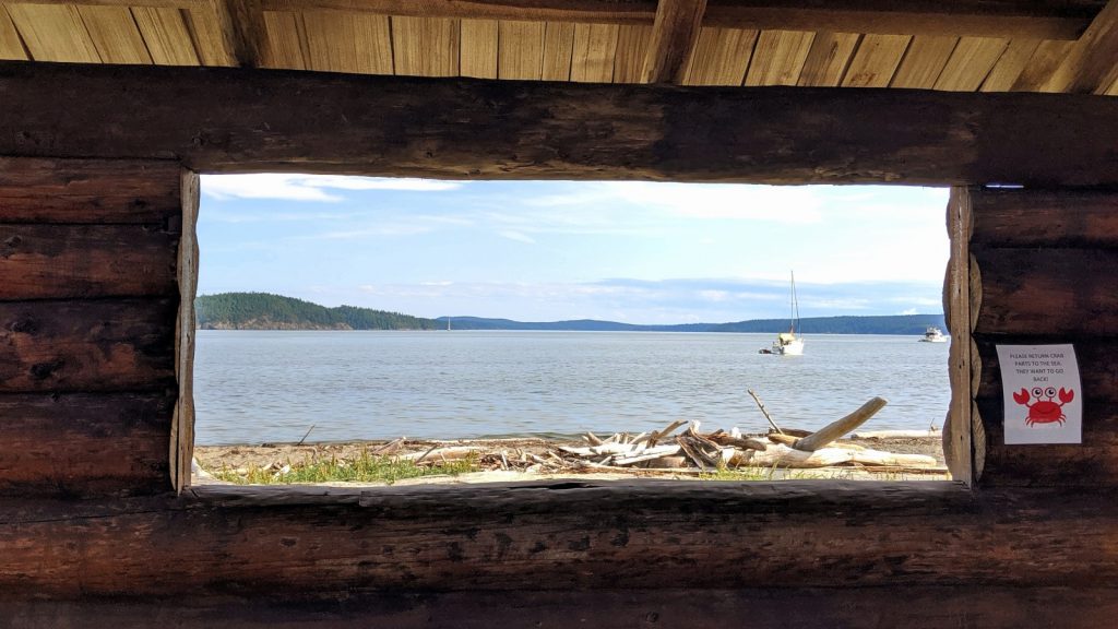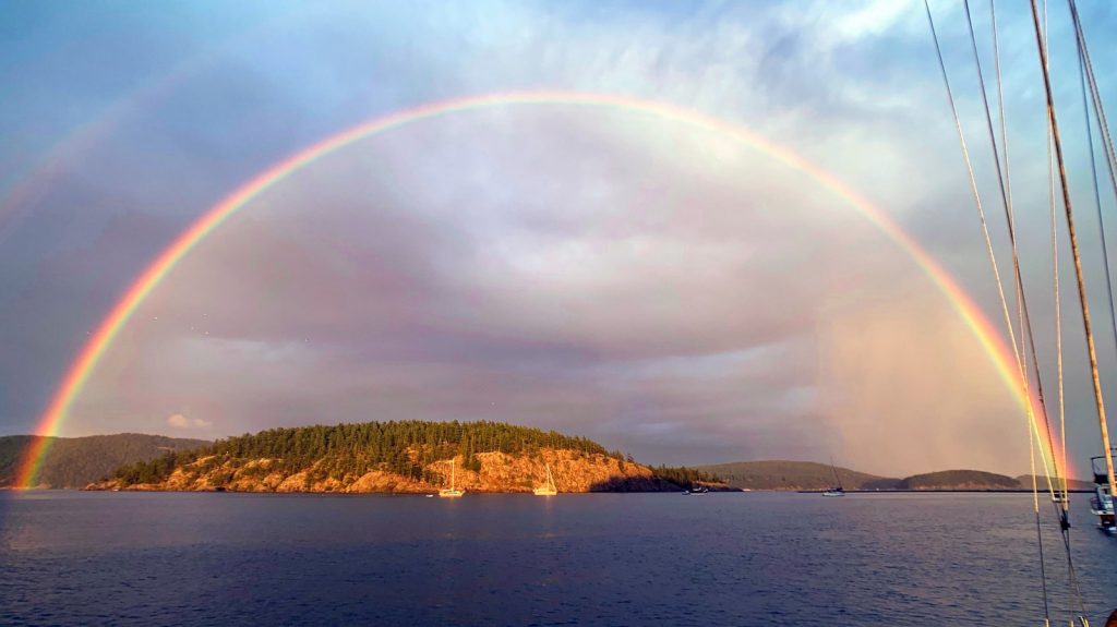 Spencer Spit State Park is where we came too. It wasn’t the most scenic place or the most protected from the wind, but we would have trails to explore and a peaceful work week on the water. We were the first boat to anchor in the bay – the others there before us taking up the mooring balls. I had thought we anchored far enough away to avoid being cramped in by later arrivals, but not so much. The name of the game seemed to be how close to the bow of Meriwether can one anchor without causing an actual collision. It all seemed so unnecessary, but whatever. When Kerri talked to one of the close-neighbors about the epic rainbow coming to a conclusion on his boat, his only response was simply “I’m from Canada!”