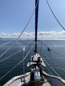 After only a single night’s stay we would leave Pleasant Harbor, knowing we would have hours of motoring (and no sailing) in our day. Kerri even got out of bed at a respectable hour so we can get started early in the day – like so many sailors do around here – but the fog would keep us in the harbor. We figured if one could not see the exit channel at all, it is best to stay put. Which we did. For a few hours. Until the fog seemed to be clearing, at which time we made a break for it.