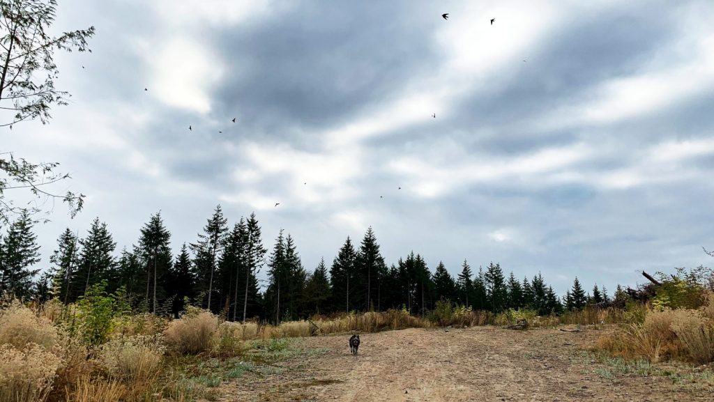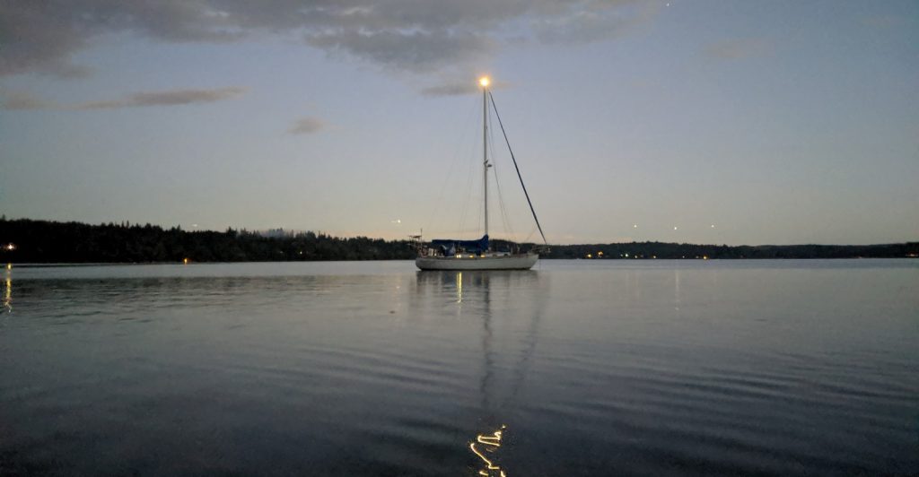 Kerri found a trail system – the Port Gamble Forest Heritage Park – a half mile to our south, easily accessible by a short dinghy ride. Completely out of character, she proposed we wake early (what!?) each morning and get in a hike before the work day starts. Who am I to turn that down? The park not only had miles and miles of trails it also happens to be one of those rare areas in which the local government doesn’t cower to a few whiners and still allows dogs to be off leash (under voice control, of course). Moose is a great trail hiker and quite easily controlled by voice in these environments. It especially helped that we were hiking in the early mornings on weekdays. It has been a long time since he got to run like he needs.