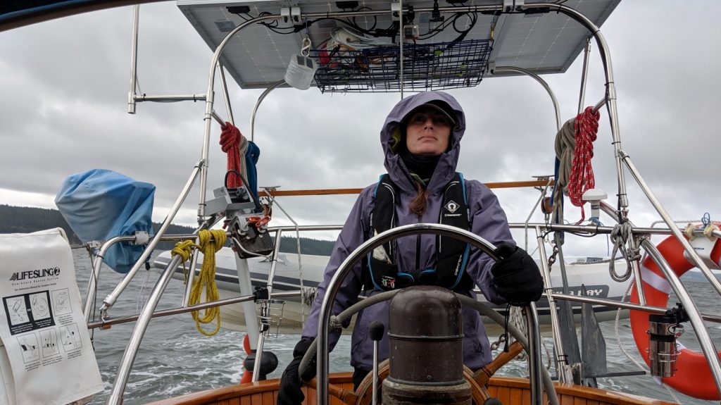 It wasn’t ideal, but we would have to get use too it eventually. Living in the pacific north west means it will rain. A lot. We’ve bee lucky that during this summer it has not rained much at all, but this weekend we had little choice but to sail in not-ideal conditions. To bypass the worst of the weather coming in the afternoon, we left Everett before the sun rose. That is right, Kerri got up before the sun! We even had to turn on the tri-color navigation lights it was still so dark out. The traffic on the Snohomish River – our only way out of Everett – was like rush hour traffic. Fishing boat after fishing boat, all stacked nose to tail on their way out to open waters.