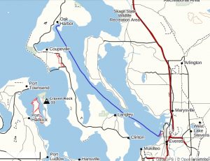It took 15 minutes to make our way down the river and into Possession Sound where we turned 90 degrees to our starboard (right) to be on our way. From there it was a simple travel route, 26 nautical miles straight up between Whidbey and Camano Islands. Camano brought back memories of just eleven months ago – camped at Camano Island State Park – waiting to officially become boat owners. Less than a year ago, wow. What little we knew then. How little my muscles ached compared to now.