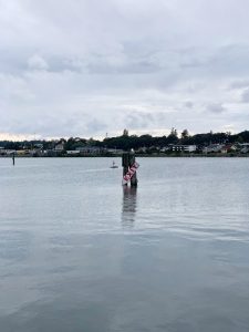 Two things happened of importance during the week. Moose and walked down to the local UPS store to retrieve the couple boxes we had shipped (taking an Uber back). Among other things in said boxes were our new foul-weather gear. Rain would no longer be an issue for us to sail in. And secondly we were re-visited by Brad and Oksana (they dropped in one us back in Everett too) who brought us their now unused wet suits! Now maybe I can convince Kerri to jump in the water for some of those underwater repair jobs.