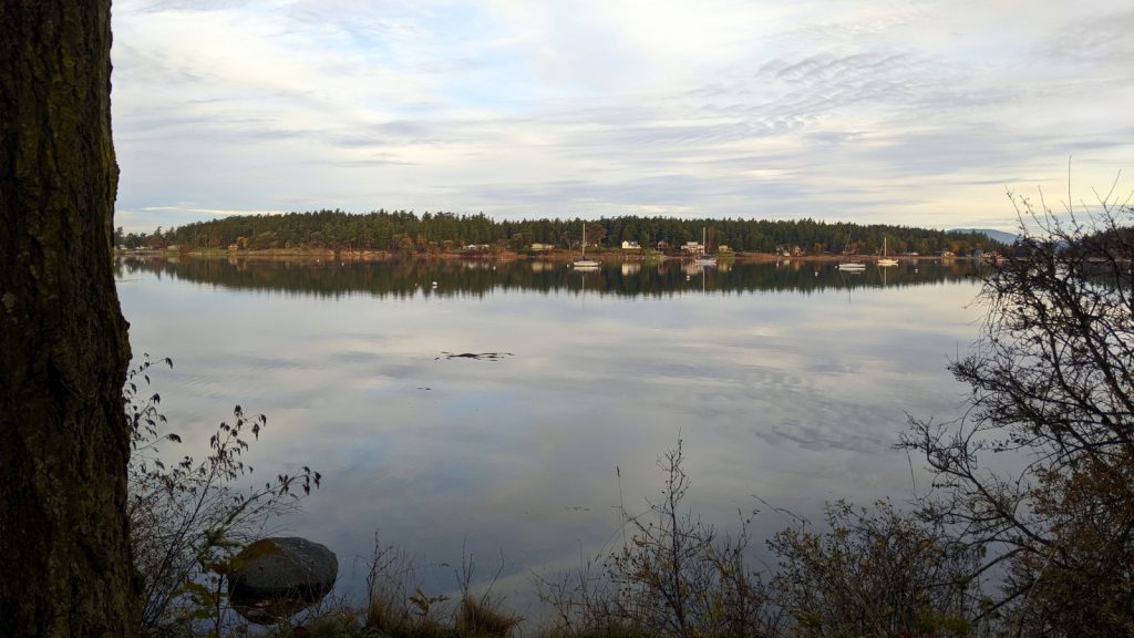 We left Friday Harbor to motor (of course there would be no wind that day) across the strait to spend our work week in a new-to-us-bay; Fisherman’s Bay on Lopez Island. We chose it because we had no other nearby choices that we hadn’t already gone too, and it’s proximity to Lopez Village. Only 90 minutes later we had arrived and dropped anchor, only for it not to hold the sea floor. We tried again with the same result, so tried again for a third time only for the anchor to slip in the mud for a third time. It took a fourth attempt for the anchor to finally plant itself properly, making it our most difficult anchoring to we have had to date. It was then that I noticed that all four of our fenders were still down, which means we never raised them after leaving Friday Harbor, like complete noobs. Even though no one else was on the water to see our mistake, it was still embarrassing.