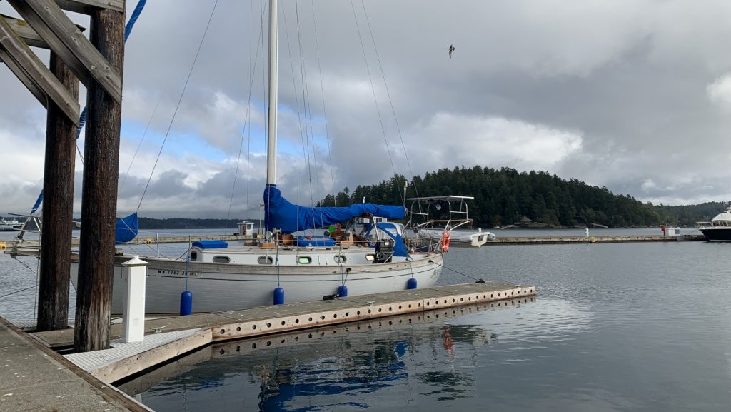 Friday Harbor was just a weekend stop. Originally planned for a single night, we spread out the chores over two full days and decided to buck up for a second night at the marina. Luckily, Kerri remembered that since it was off season, we would get a free night since we had stayed five days in the past. During our stay we made two trips up the street to the local hardware store. At said hardware store was a pallet stacked high with the compressed logs that we prefer to use, and they were barely over $1 each… an amazing bargain. We ended up buying thirty logs, (taking two trips in our wagon), enough to last us three weeks at our current burn rate. Somehow we fit all of these logs below our sole (floor), which is such an ideal place for them; very low in the boat and easy access.
