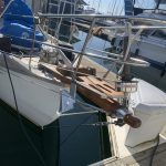 Kerri has been worried about our bowsprit for some time now. It is a pivotal part of the rigging and would be expensive as all heck to replace if it began to rot. So on a sunny day she got to the task of removing all the hardware, sanding it all down, and finishing it off with some epoxy and sealer. Two days of hard work later and our bowsprit looks almost new.