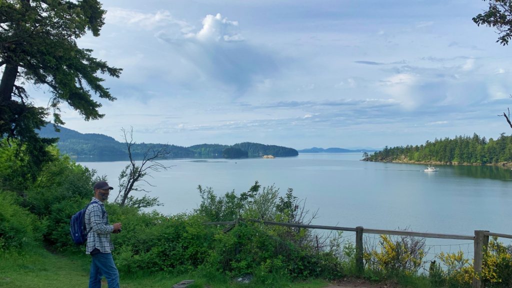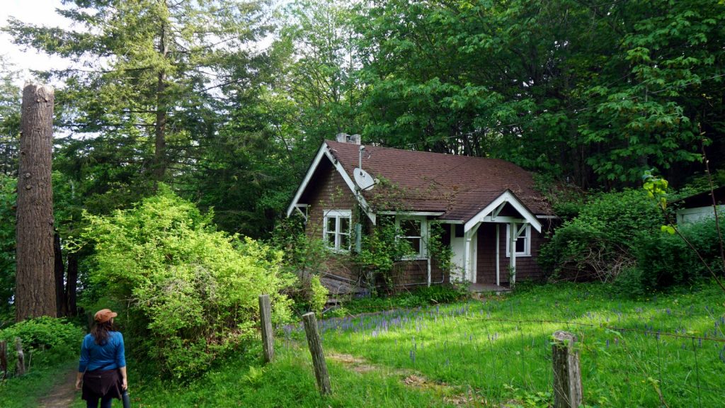 During our evening happy hours, sitting up on deck enjoying the non-raining evenings, Kerri noticed a large house up the hill. People would come sit out on the large grassy area that overlooked the bay, and us in it. We discussed how nice it is to see a family that sits out on their own lawn, but it turned out not to be. The entire estate – Woodstock Farm – is part of Bellingham City Parks, and the people were random daily visitors. We set off to visit the farm on a clear day, and thoroughly enjoyed the hike and scenery.
