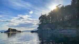 We re-positioned Meriwether to the South side of the bay for protection from a stiff southerly blow showing up mid week. From here it was an easy dinghy ride over to explore Chuckanut Island in the middle of the bay. At first glance it is not much more than a few acre large blob of sandstone covered in trees, but the small trail there provided a great tour. The island also gave us our first glimpse – in 2020 – at some tidal pools.