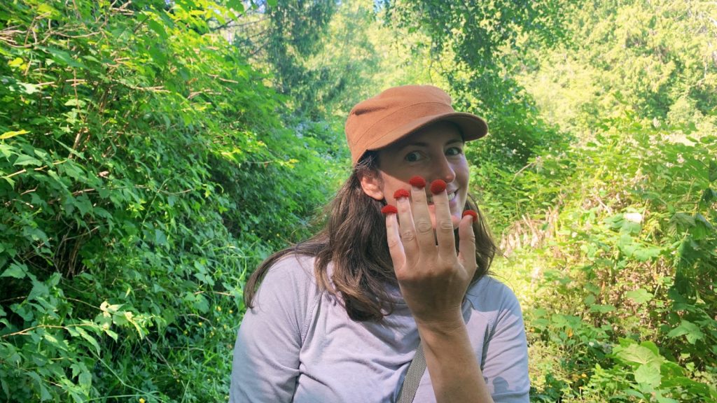 On the days we were not on the beach digging up poor defenseless bi-valves and tearing them away from their families to be cut up and eaten, we were further inland attempting the same to poor defenseless fungus. Just across the highway is the Port Gamble Forest Heritage Park and it’s many miles of trails. Kerri, Moose, and myself hiked around these trails when we were here last year and there was an abundance of berries and mushrooms just waiting to be gathered. It was just Kerri and myself this time, but we set out to find the patches of fungi she had marked on the map in hopes of scoring even more foods that only she will consume, as if we didn’t already have jars and jars of clams now. Nevertheless, we hiked around for miles through beautiful rain-forest landscapes mostly only finding tons of berries, which we did pick our fair share. It wasn’t until the last day that we checked in on one spot that she had marked and found a nice stash of mushrooms for her to gather. Like a good percentage of all fresh foods – and 100% of all fresh herbs – that come on our boat, they will die a slow death in our fridge over a few days, uneaten… (yep, just checked and they are still there five six days later and looking pretty darn nasty). Kerri did make a fine coffee-cake style thing with all the huckleberries we collected though. That was yummy, so I will give her that one.