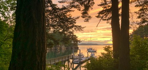 Two nights we spent hanging out with these two great people, while keeping socially distanced of course. We ate BBQ chicken meal one night and Pizza the next (I did say they were my kind of people, right?) while we sat out on their patio overlooking Stardust and Meriwether together in the small cove. Drinks and stories ensued for hours, well past the very late sunsets up here at this time of the year. We even spent one night at the fire pit for some s’mores. The weather, for once, was perfect for sitting out after the sun dropped and we took full advantage of it. Ah, it was good to see these two. Hopefully our plans coincide in a few more months to sail with them back up near the islands.
