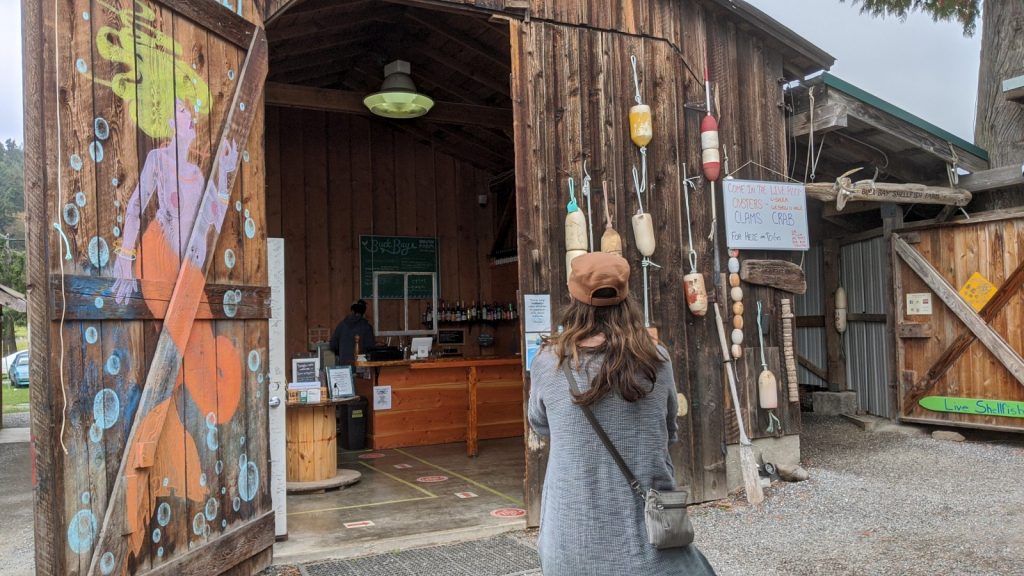 As it turns out, Kerri had a hidden motivation to bringing me out to East Sound. I had repeatedly expressed that going to East Sound did not necessarily draw me in, but she continued to show interest, so we kept it on the list. Now I know why. Not far from our last anchorage, at Obstruction Pass, is the tiny town of Olga. It was a quick and easy motor over to the little bay outside of town, where we planned to drop anchor and take the dinghy to shore. But, the sight of a welcoming dock combined with the urge to forego all the hassle of lowering the dinghy back into the water convinced us to tie up instead. We only planned to stay a few hours anyway, and this makes things a whole lot easier. A short walk through and out the other side of Olga is Buck Bay. On Buck Bay is the Buck Bay Shellfish Farm. This is why we are here; so she can eat more bottom feeders.