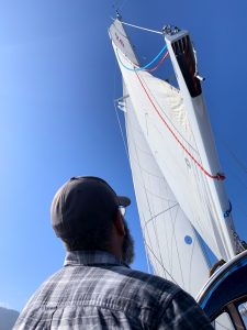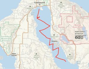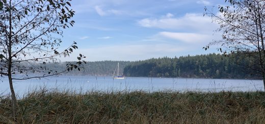 The sail, although taking twice the time over motoring, was perfect and we wanted the hours of sailing on our resume. It didn’t take long for us both to agree that it was the right decision – to sail. Life at sea is so much more pleasant with the motor off and the sails dancing in the breeze. We tried a few sail-trim ideas and practiced a heave-to which we hadn’t done in a long time. It was a productive day on the water. Calm and steady winds pulled us up East Sound towards Madrona Point, where a city dock awaited our arrival. Not to tie up too – we prefer to anchor – but to use for a provisioning trip into town.