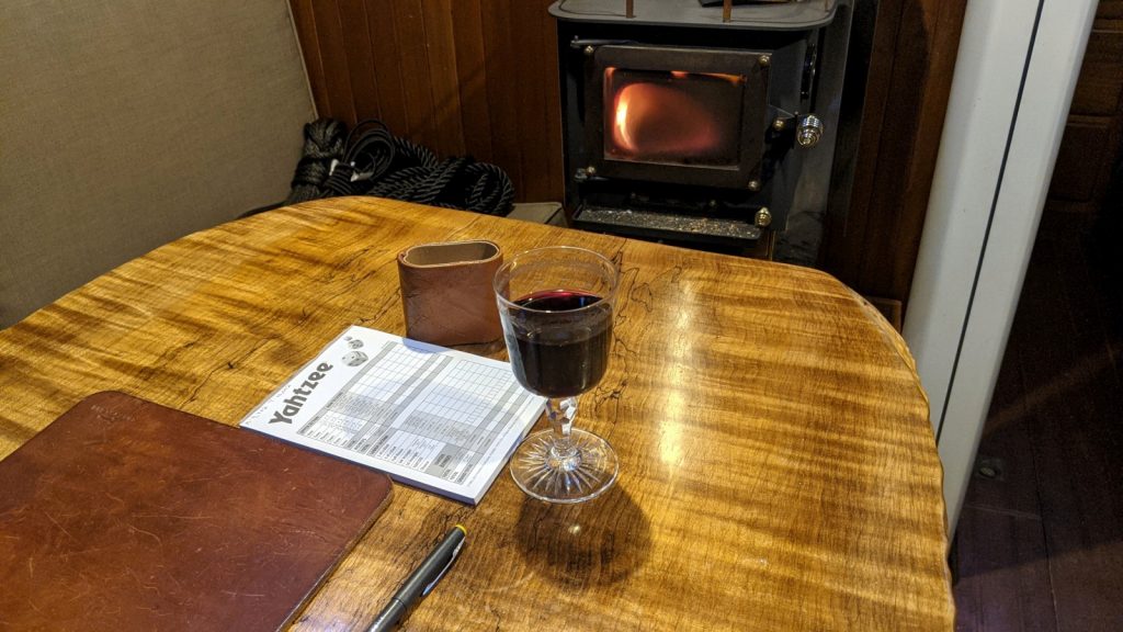 This is likely the final time we will ever get to visit this anchorage as there are no plans to return to the Puget Sound once we sail off towards Alaska. So we are enjoying our last days here as best we can. We have already gone up for some trail hiking, and Kerri already took some time to pick a few oysters. The weather has prevented us from getting out a few days this week, with Friday’s wind-event being the worst of it. Gusts into the mid-30’s made Meriwether dance all about, but we were mostly comfortable since the waves never really have the space to build up here. There was a welcomed feeling of calm during an event that would have frightened us not long ago. We have other things to keep us entertained during these times, like continuing our years-long game of Yahtzee beside the wood stove (I’m still winning).