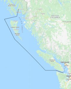Our route, roughly 800 nautical miles in length, brings us out into the Pacific Ocean for our first offshore experience as we navigate roughly 25-50 miles outside (west) of Vancouver and Haida Gwaii islands, bypassing the entire Canadian border. The weather out there is rarely a nice Sunday afternoon drive. Storms are always in the process of making their way across the Pacific. The best we can do is plan to go between two, using each’s winds to our advantage.