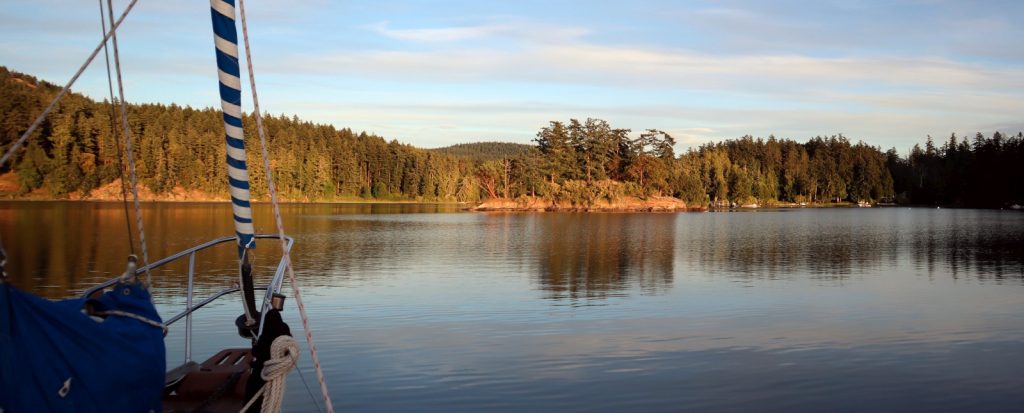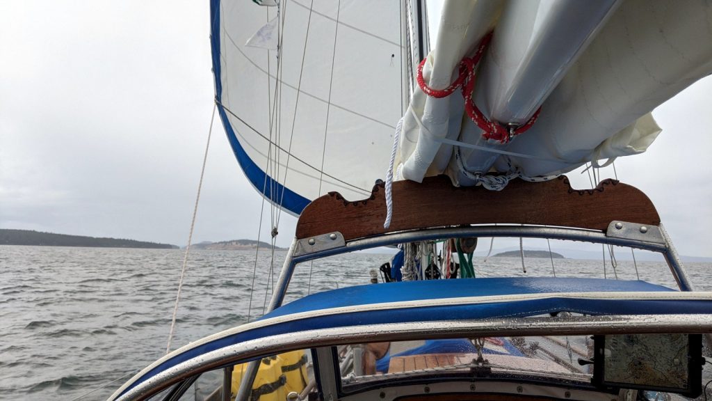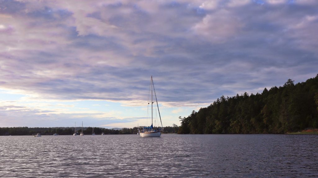 Kerri would finish her work day there, but only minutes after she closed her laptop we were under sail on our way towards Roche Harbor. For our first time we sailed both off anchor and to anchor on the same voyage. Unfortunately we did have to motor a short distance to avoid some unnecessary risk, but otherwise it was a super-peaceful 3 mile (2 hour) crawl in barely a breeze, but we got there. We were in no rush anyway as the sun barely sets before 10pm nowadays. Here we would pickup more packages, do a small load of laundry, grab a couple more stale-grocery, and get one more hot shower in before we start on that Alaska adventure this weekend.