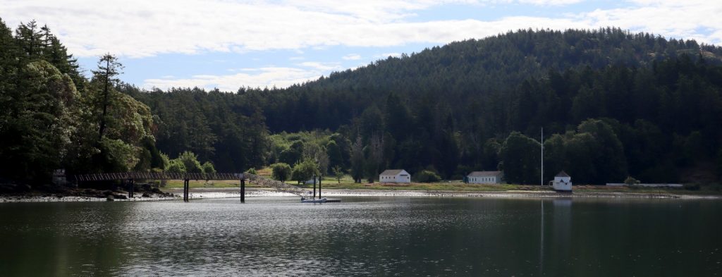We had one more week before our planned re-departure towards Alaska and we did not want to spend it in the same place as last week (Friday Harbor). All the major repairs and provisions are complete so we chose to get away from civilization and get a little relaxing on. We decided on a return trip to Garrison Bay at English Camp, at the northern end of San Juan Island. Garrison Bay is one of our favorites this side of Juan De Fuca. It is scenic, quiet, usually not very crowded (at least it hasn’t been the three other times we have been here), and has a nice trail system on land with easy access. We really couldn’t ask for more out of an anchorage.