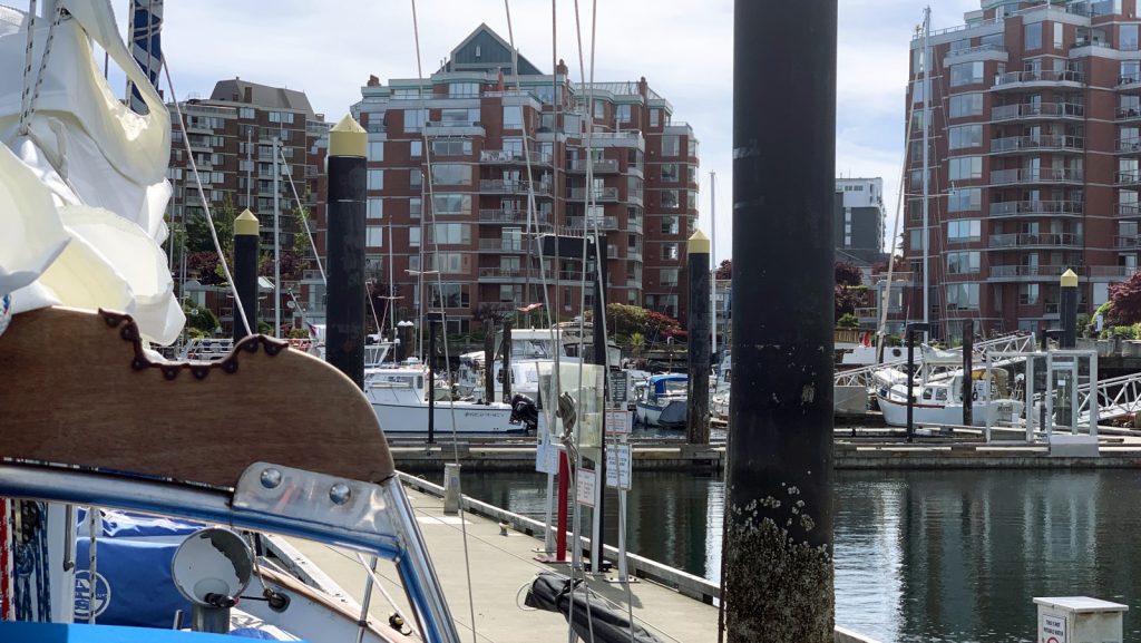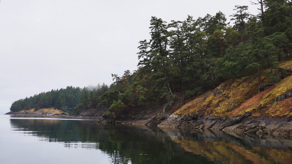 It was sort of a perfect first day of our transit through to AK, which made me ask multiple times, “Why didn’t we just to this in the first place?” We would have been in AK two weeks ago! The forecast told us that we should expect to be motoring the whole time, but we had wind for much of this first leg (on our nose, of course), and with the current, with us, as planned, we managed to sail for 7 1/2 hours, much of it at well above six knots. The long days this time of year give us plenty of daylight before we have to anchor, and we made 69 miles (though much of it was backtracking — we went south and east to check into Canada in Victoria due to our declarations, then had to head up east and north again). That said, in one day, daylight hours only, we made it to practically the exact same latitude where we turned around and headed back on the outside—and if you include the Straight, that took five days.