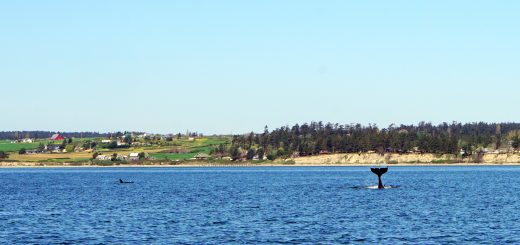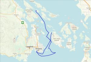 It was sort of a perfect first day of our transit through to AK, which made me ask multiple times, “Why didn’t we just to this in the first place?” We would have been in AK two weeks ago! The forecast told us that we should expect to be motoring the whole time, but we had wind for much of this first leg (on our nose, of course), and with the current, with us, as planned, we managed to sail for 7 1/2 hours, much of it at well above six knots. The long days this time of year give us plenty of daylight before we have to anchor, and we made 69 miles (though much of it was backtracking — we went south and east to check into Canada in Victoria due to our declarations, then had to head up east and north again). That said, in one day, daylight hours only, we made it to practically the exact same latitude where we turned around and headed back on the outside—and if you include the Straight, that took five days.