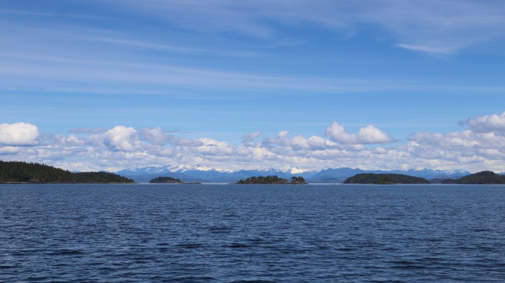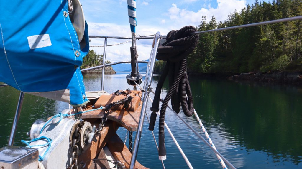 Day 6: About 45 nautical miles, all by motor, from Pearse Island to Bull Harbor on Hope Island—the northeastern tip of Vancouver Island. Largely uneventful day, with a stop in Port McNeill to top off our fuel tank, just in case, fir the long stretch ahead. I stayed down below, working, until out cell antenna could no longer reach the last vestiges of service. We saw out very first sea otter from the boat (up until this far north, it’s only been river otters, and sea otters definitely win the cute contest). Once we anchored, we started prepping the boat for the next leg — a 2–3 day nonstop passage up the open waters of Queens Charlotte Sound, straight to Ketchikan. Because we’re suckers for punishment, still want to get there fast, and we’d rather sail than motor. A new friend gave me a stash of her Stugeron seasickness pills, which I’ll be taking religiously, even if I don’t think I’m about to get seasick.