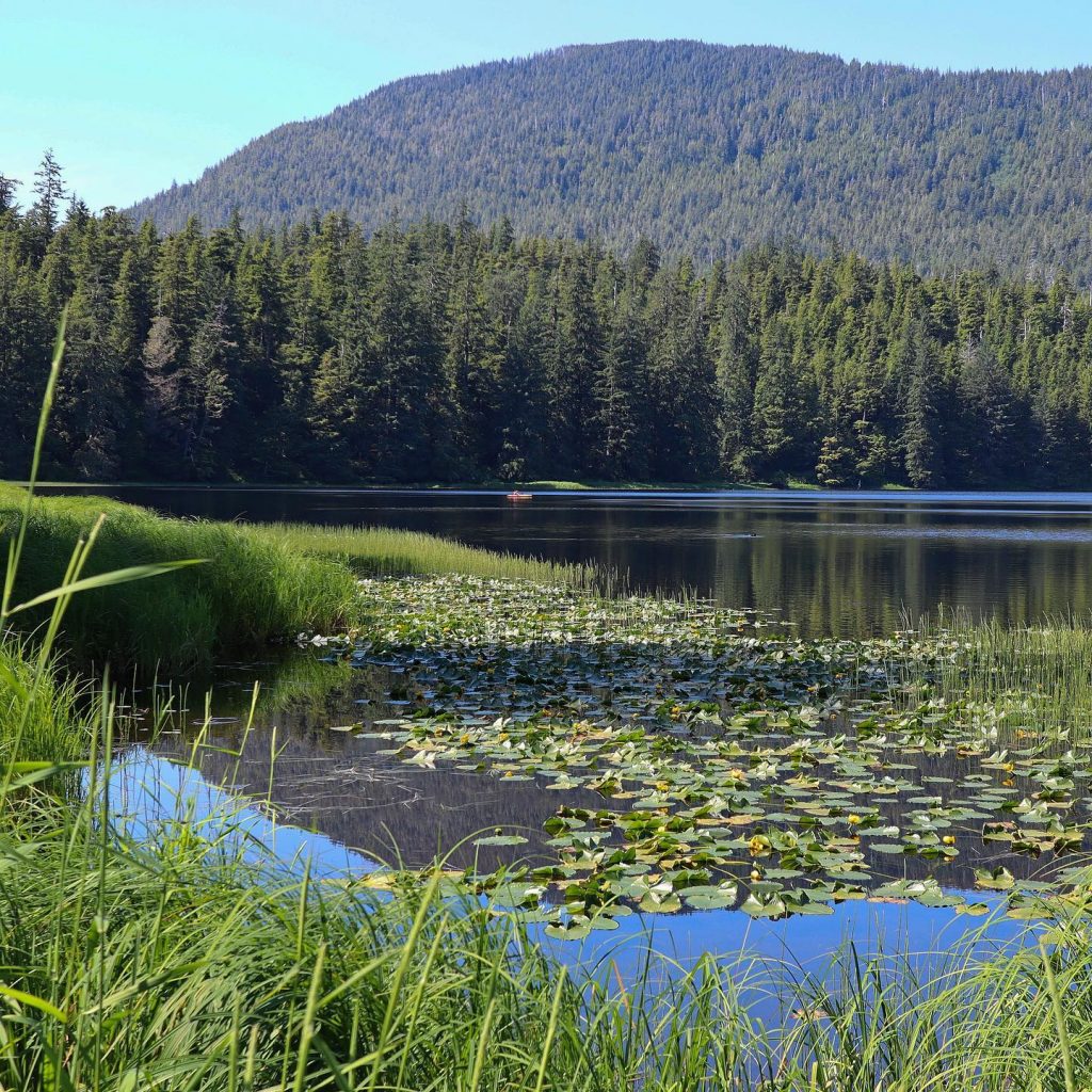 We hiked an excellent 10-mile* loop to Ward and Connell Lake, mostly in shade on this low-eighties day (hey, it’s hot for Ketchikan). It was nice to be surrounded by freshwater for a change. But the real icing on the cake was the Ketchikan Silver bus line. We had a great experiences with it and the drivers yesterday (when we went to Totem Bight). Today, our morning started off with the same driver (and he’s still great), by no fault of his, the wheelchair ramp failed to properly stow after a stop, which apparently prevents the entire bus from moving, and we were stalled for about 40 minutes while a mechanic came out and sort of fixed it. After that, the driver was instructed to continue on his northbound route, but after he started, he was then instructed to instead go South—with a bus-full of northbound passengers (well, three to be exact). So he turned around and dropped us back off at the previous stop, and we had to wait for a new bus there. When that bus picked us up, it barreled along at some ungodly speed (to make up for lost time, I guess), and sped right past our stop, then yelled at us for not “telling him” to stop, even though we had pulled the bell pull in plenty of time, and the sign was clearly flashing “passenger stop requested”. Apparently, this bus driver requires verbal confirmation before he’ll actually stop. So we got off and walked along the highway back to the road with our trailhead, and started the trail loop in a different way to what we’d planned. Which meant, when we were done with the hike, we walked another 3/4 miles up the narrow shoulder of the highway, uphill in the the full sun on pavement, to wait at the bus station for the ride back home. When the bus “arrived”, it sped right past us and never stopped. We ended up spending $35 on a cab ride home.* 1 mile of the ten was walking highway shoulders due to the buses.