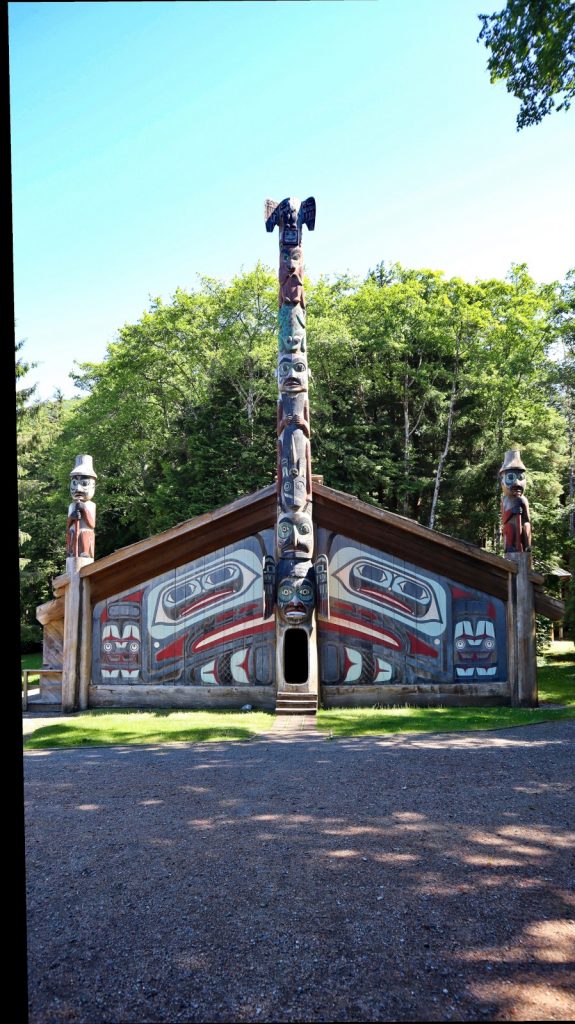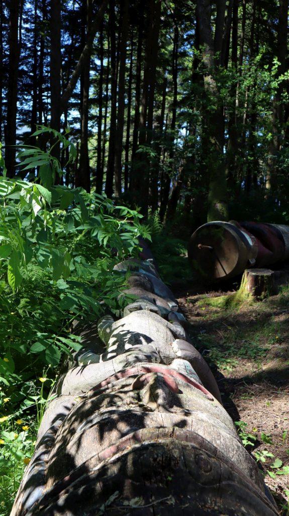 The following day we hopped onto public transportation to complete the eight mile journey to Totem Bight State Historical Park where we hiked around in awe of the totems and the recreation of a huge clan house.
