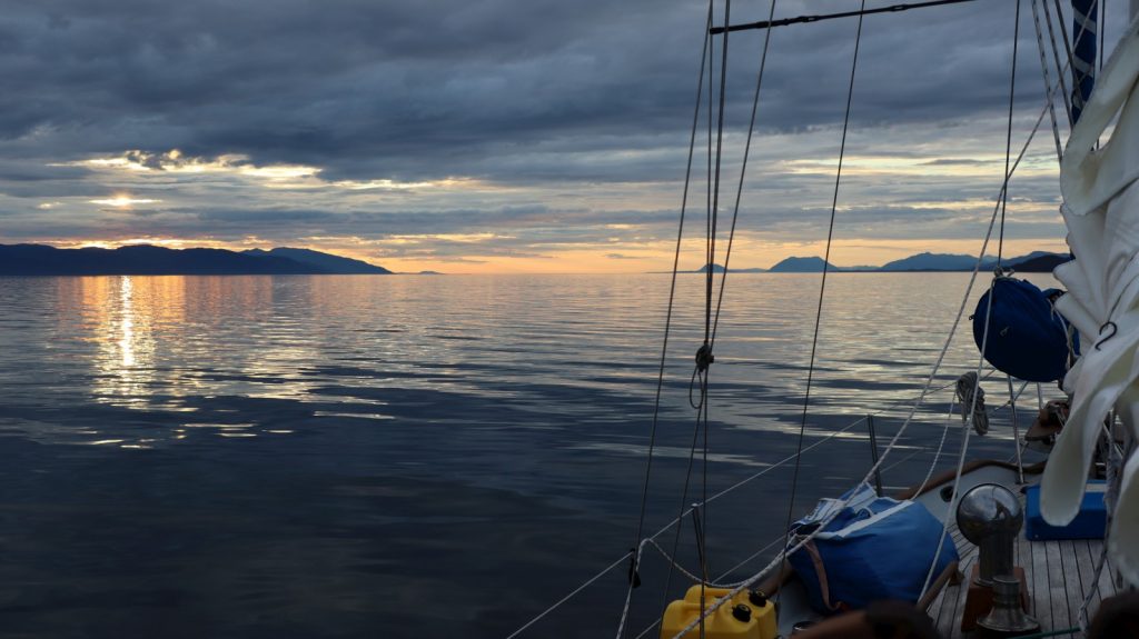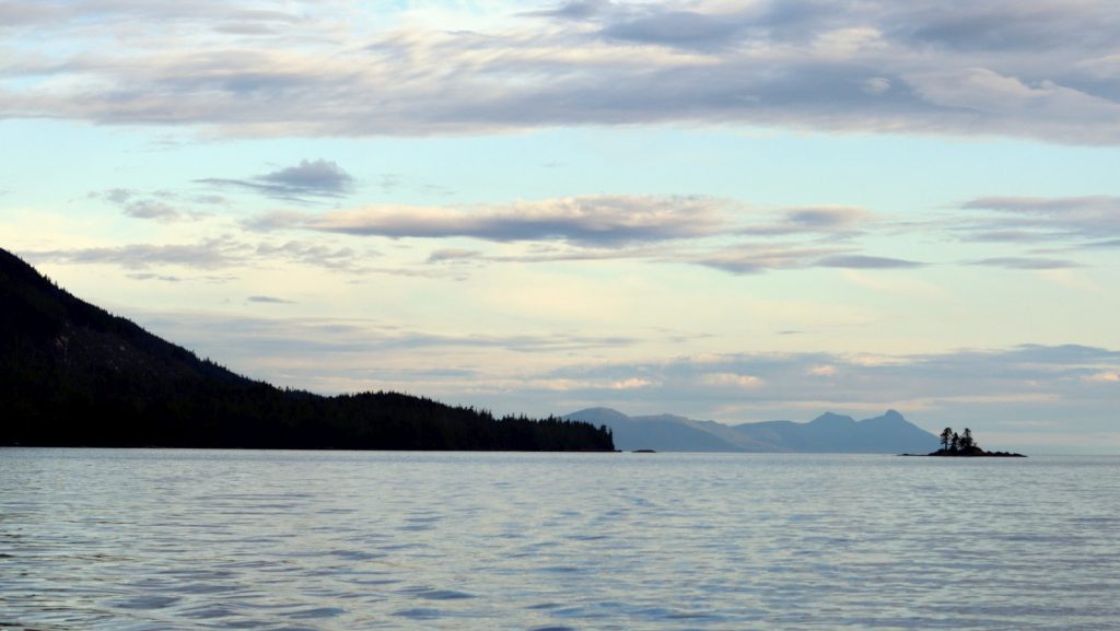 It took a bit more of an effort to finally get gone, and we did so just before starting a work week. We had only a single day to knock out the refueling, laundry, groceries, and last minute packages arriving. We were then suppose to get in a quick shower each but didn’t care to wait in line. We did get out of Ketchikan in the early afternoon, motoring as fast as we could up the Tongass Narrows to get out into Clarence Straight to catch the flood tide heading north. Here I attempted to sail. The wind was mostly mild and from a direction that forced us to run perpendicular to our intended heading so after an hour of dying winds we got back to the motoring. At least the currents would help us.