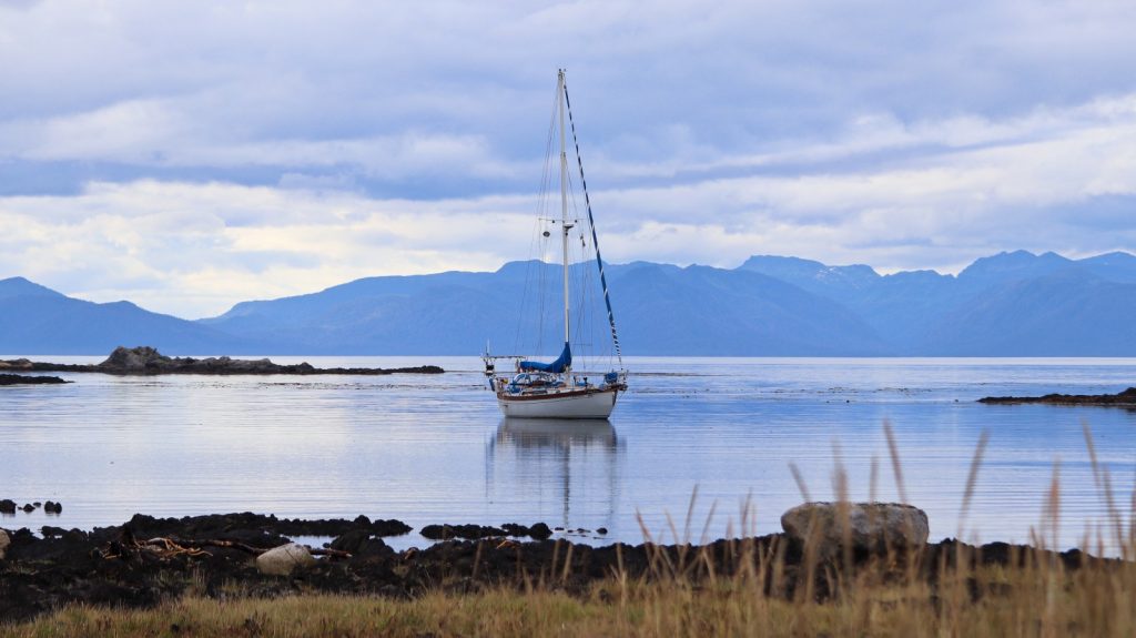 Once inside I came up with the idea of throwing the crab pot over before we got to the anchorage, saving Kerri some time in the dinghy. It was a brilliant plan, but our execution was lacking. Kerri’s slow deployment combined with my fear of tangling the line in the prop (extremely close to a rocky shoreline) made a for bad recipe. Add too it Kerri’s lack of memory on the length of the crab pot’s line, and we got it all wrong. We launched it off the stern and watched the buoy sink under the water and out of sight. Apparently, we did not have line long enough to handle the 90 foot depths. Disheartening to say the least.