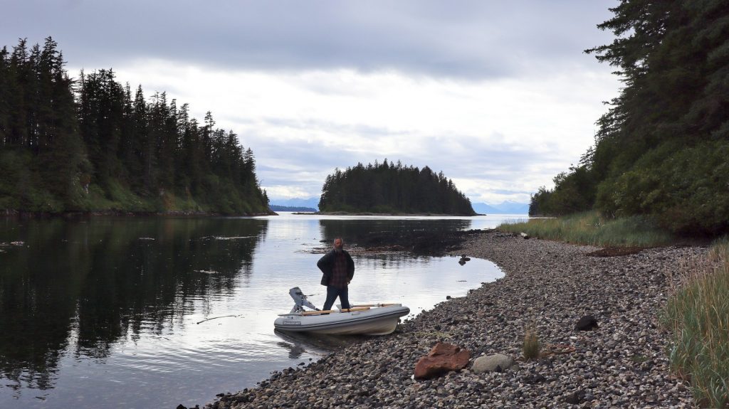 On the bright side, the anchorage was fantastic. We even had a cell signal from Kake! So we hung out, toured the a couple of the other islands via the dinghy, and got all the plans ready to make a two-day dash into town for supplies, and to avoid a big blow coming through, before returning to this very spot for the remainder of the work week. On our way out, at low tide, we spotted our crab pot buoy under the surface of the water and spent a half hour circling Meriwether trying to hook it with our dinghy anchor, but eventually gave up. Meriwether does not maneuver well enough at slow speed for something like this.